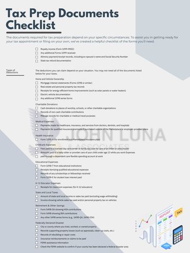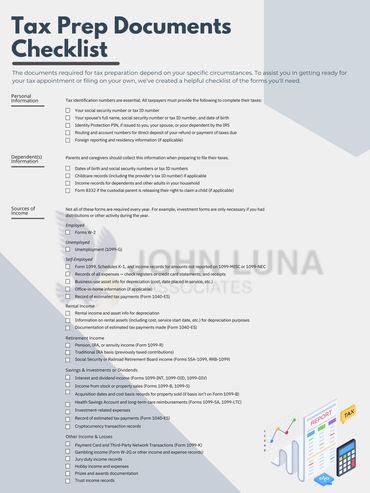 The documents required for tax preparation depend on your specific circumstances. To assist you in getting ready for your tax appointment or filing on your own, we’ve created a helpful checklist of the forms you'll need.
